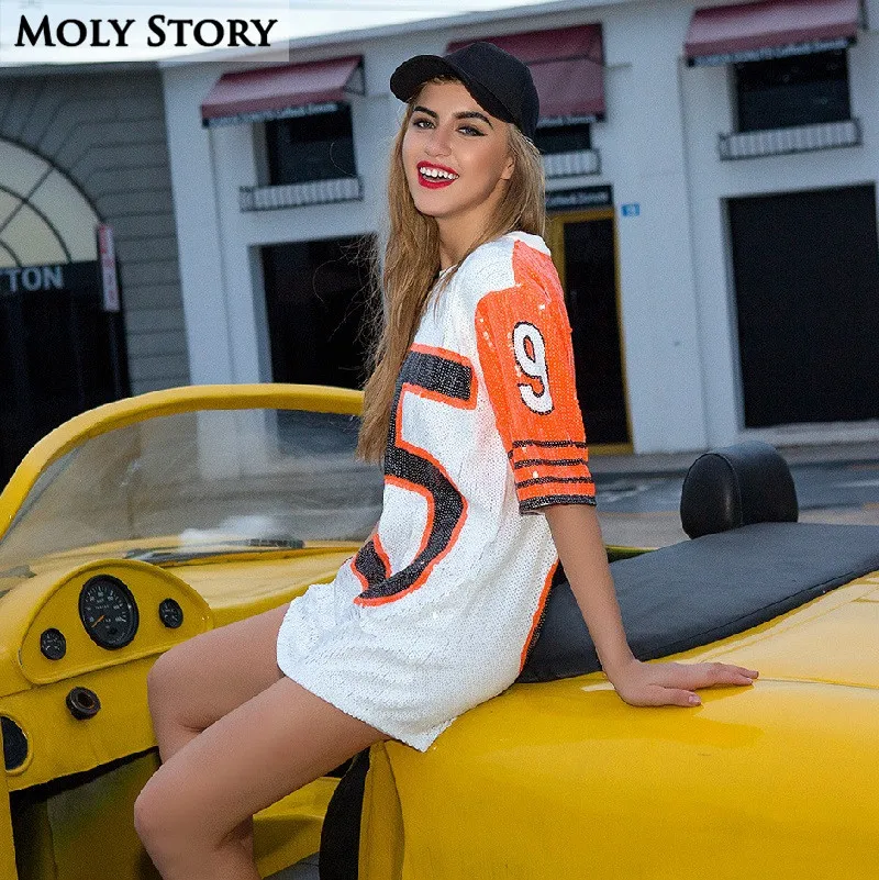 BEST Sequin Top Women Hip Pop Oversized T Shirt Night Club Cheerleading Dance Wear